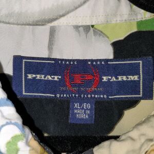 Vintage Y2K Phat Farm Shirt Tan Button Up All Over Print Tiger Dragon Mens
