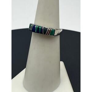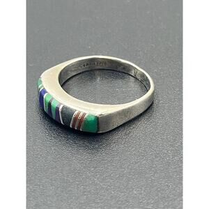 Vintage Zuni Style Sterling Multi-Stone Inlay Turquoise Lapis Malachite Ring 6