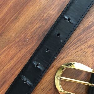 AS IS there is a few areas with some bubbling on the belt and a few areas where the leather has been touched up Minor tarnishing on the gold.
