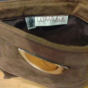 cute Reva Ultrasuede brown handbag.  the gold strap has a little twist on it other then that I'm very good condition
