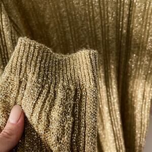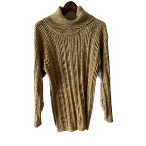 Vintage gold metallic sparkle ribbed knit turtleneck tunic sweater size medium M