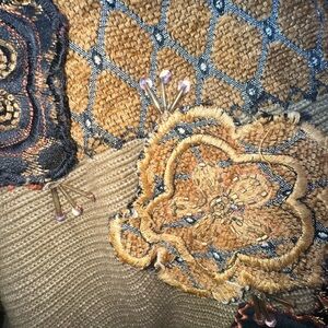 Bold and artsy vintage patchwork jacket by New Direction. Features an eclectic mix of zebra print, floral brocade, embroidered appliqués, and metallic textures — a true statement piece that’s perfect for layering.