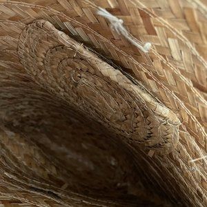 bag seems like straw, straps and detail accent seems to be jute, in my opinion.