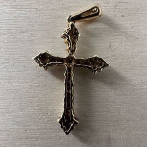 Vintage 10k Gold Cross Pendant With Inlaid Stones
