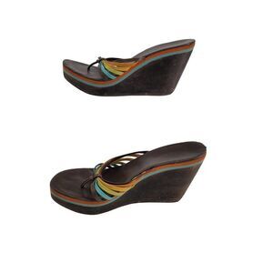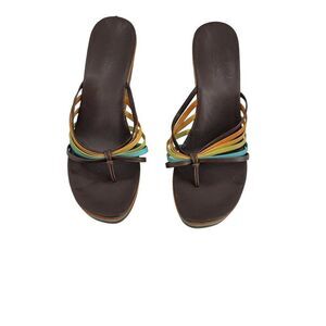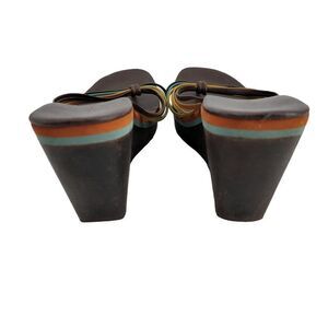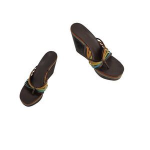 90's BCBG Girls Platform Wedge Sandals 8.5 Rainbow Strappy Wood