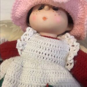 Vintage Crocheted Handmade Knitted Yarn Retro STRAWBERRY SHORTCAKE Doll