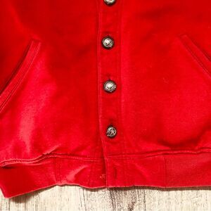 Womens Vintage Gap 4 Button Long Sleeve Red Cardigan Sweater With Pockets. Size Large. Pit-to-pit 24", Collar-to-Hem 23". Bottom button is missing. Some stains on sleeves. See photos for condition.