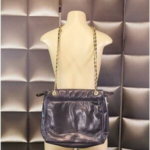 Preloved black leather vintage purse. See pics for size