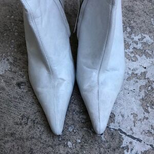 These are great 1970s boots They had some weather in through the toe and I have painted them white. They probably need one or two coats to be perfect but they are good as is.