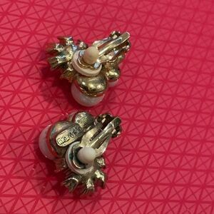 Each earring has 5 clear rhinestones (10 total) and 5 (10 total) off white pearls