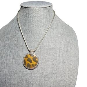Embrace the allure of yesteryear with our 'Vintage Tortoise Shell Aura Pendant Necklace.' This exquisite piece features a classic tortoiseshell pattern set in a shimmering oval pendant, evoking the timeless elegance of a bygone era. The pendant hangs gracefully from a delicate silver chain, adding a touch of sophistication to any ensemble. Each piece is encircled by a halo of sparkling accents, reflecting the craftsmanship of vintage jewelry. This necklace is not just an accessory; it's a statement of enduring style. Perfect for those who cherish the charm of vintage chic, it's a versatile addition to your jewelry collection or a cherished gift for someone special.