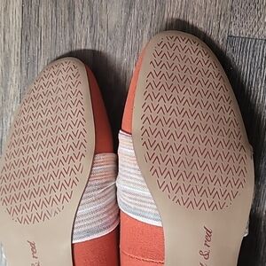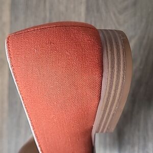 Violet &Red loafers. Orange fabric with a fabric knot. Season.
