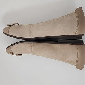 Vionic Minna Ballet Flat Beige Suede with Leather Toe and Heel Size 6