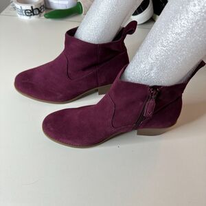 Vionic Vera Eggplant Purple Suede Ankle Booties Boots Side Zipper Low Heel