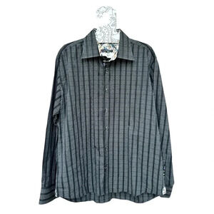Visconti Uomo Men’s Black Stripe Long Sleeve Button Up Shirt Flip Cuff Size L