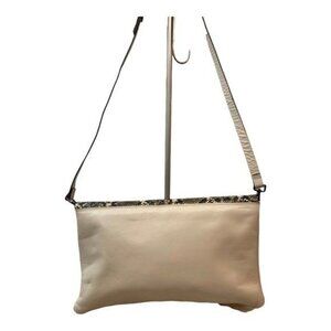 Cream leather Handle on front of bag to hold like a clutch if desired