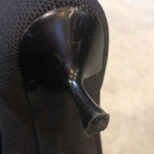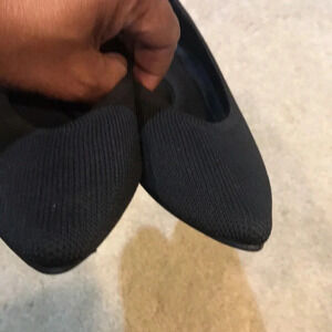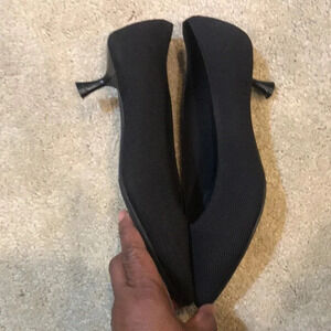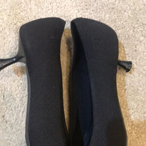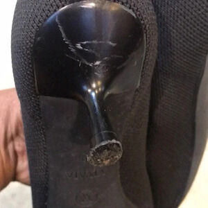 Pre-Owned, Comfortable kitten heel, pointed toe breathable mesh fabric shoes. Some signs of wear on bottom of heel bed.