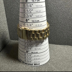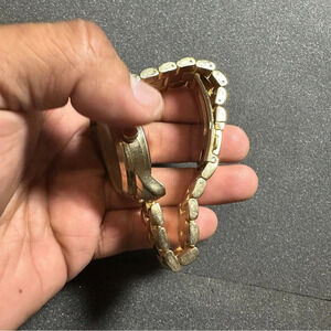 Vivani Ladies Quartz Watch Gold Tone Gold Dial Working With New Battery shows signs of wear such as scratches on case band and crystal as well as some discoloration see pictures for reference