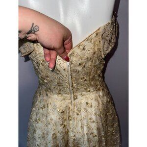 Vtg 50s Perullo David Hart Gold Floral Embroidered Strapless Dress Party Size S