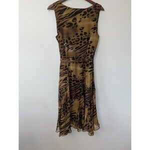 Vtg 90s Y2K ICE Silk Wrap Dress Leopard Print Midi Sheer Flowy Lightweight Sz 8