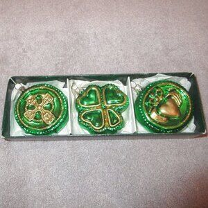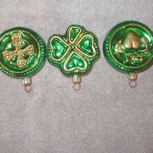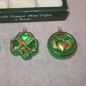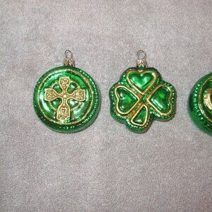 Vtg Blown Glass Chrismtas Ornaments Glitter Irish Celtic Cross Claddagh Shamrock