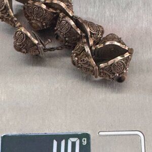 Vtg Chinese Export Bracelet Tiger's Eye Cabochon Silver Gilded Vermeil Filigree
