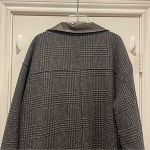 Vtg EDDIE BAUER Wool Glenn Plaid Leather Trim Overcoat Trench Coat MENS XL