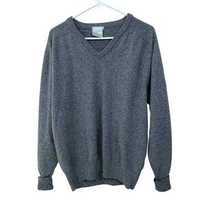 Vtg Gilbert Wilson of Hawick Scotland Men's Large Gray Lambswool V-Neck Sweater