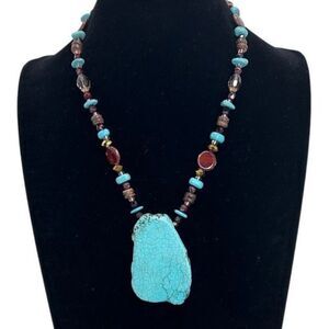 Vintage Glass & Stone Beaded Statement Necklace Womens 9" Multicolor Howlite Stone Pendant