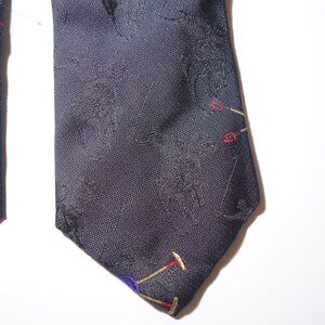 Vintage Ralph Lauren embroidered black on black equestrian polo player tie made by hand.