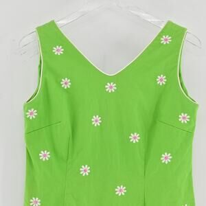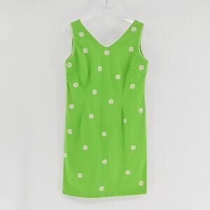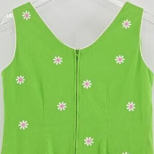 Vtg SAG HARBOR Green Embroidered Dress Size 10P Daisy Cotton Vibrant Bright Boho