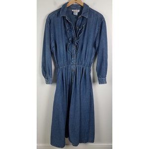 Vtg. Talbots Women's Sz. 8 Denim Button Up Long Sleeve Ruffle Front Maxi Dress