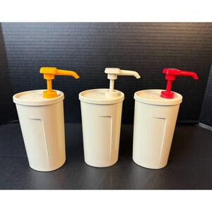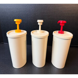 Vtg Tupperware Pump Dispensers Condiments Ketchup Mayo Mustard Set Of 3 *READ