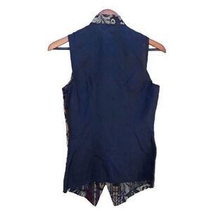 Vtg 80's Vest Artsy Tang Suit Mandarin Jacquard Metallic Fleur De Lis Tunic Sz M