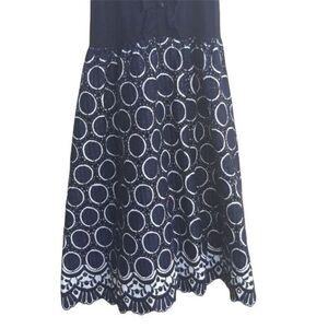 Vintage 90's black and white scalloped edge eyelet lace detailed skirt fully lined with attached row of tulle for a full skirt full sleeveless tank top dress by Weston Wear. Hanger photo doesn’t do it justice.