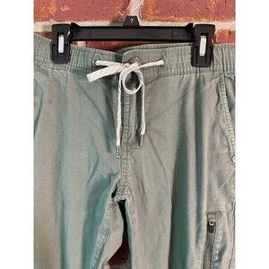 Vuori DurraTerra features tiptop fabric with two way stretch. A modern slimmer fit. If you like a roomier leg the website suggests sizing up. 98% Organic Cotton and 2% elastane. Midrise with a drawstring. There mesh pockets, a zip pocket, full length. These are a size XS.