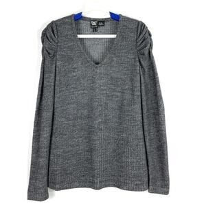 W By Worth Womens Pullover Sweater Size Small V Neck Herringbone Wool Blend Gray