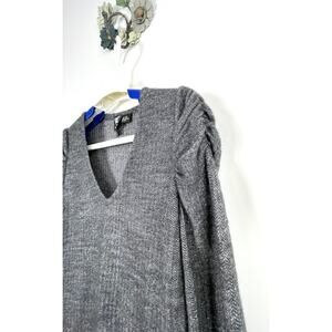 W By Worth Womens Pullover Sweater V Neck Herringbone Wool Blend Gray.