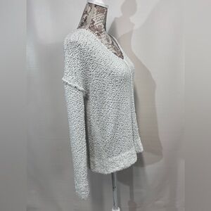 Ivory boucle V neck long sleeve sweater from WARM & COZY, size S.