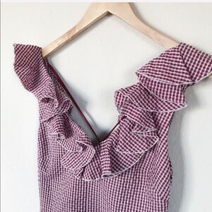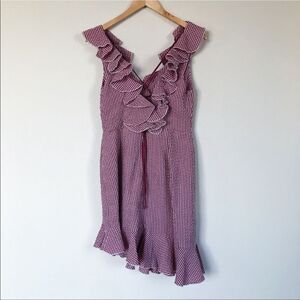 WAYF Gingham Mini Ruffle Hem Dress Medium NWOT