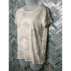 * WE THE FREE CAMO CAMOUFLAGE BEIGE GRAY WHITE SHORT SLEEV THIN SOFT T-SHIRT LARGE