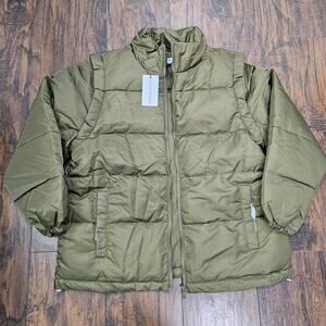 WE WORE WHAT Puffer Jacket With Removable Sleeves Oversized Size Small Green