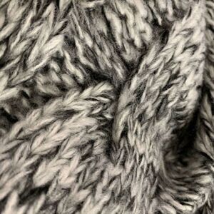 Double Sided White Faux Fur and Black and White Cable Knit Twisted Infinity Scarf.