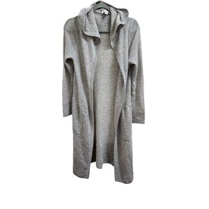 WHITE WARREN Cashmere Trapeze Cardigan Cashmere Hooded Sweater Gray Size S