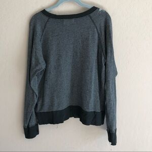Contrast lettering spells the secrets to a life well-lived on this artfully destroyed sweatshirt, detailed with worn holes and pilling throughout. Contrast thermal bands finish the edges, and topstitched seams accent the long raglan sleeves.