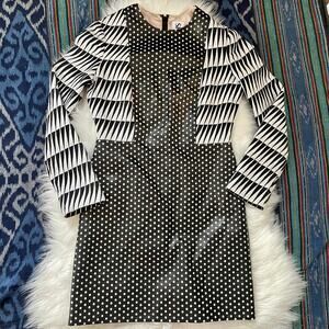 WOLK MORAIS Black White Patterned Long Sleeve Mini Dress Textured
