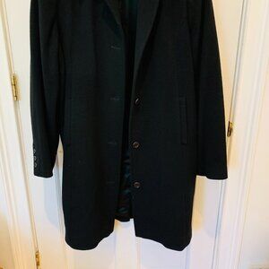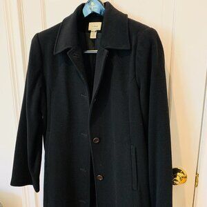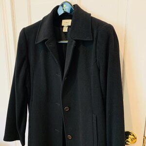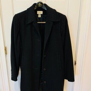 WOMEN'S CLASSIC LL BEAN BLACK WOOL LONG OVER COAT PEA COAT SIZE L - EUC