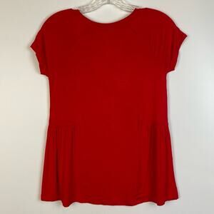 Wonder Nation girls poplin top in bright tomato red. Short cap sleeves. Poplin on sides and blousy feel. Size large. Excellent used condition. No flaws detected. Please check measurements provided for fit.