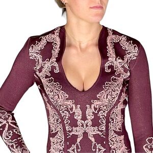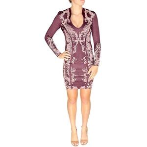 WOW WORLD OF WOMEN FLORAL METALLIC CHERRY CUTOUT LONG SLEEVE BODYCON DRESS