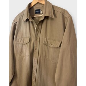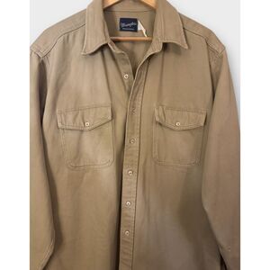 WRANGLER Western Shirt Vintage Mens XL-XXL Tan Canvas Cowboy Cut Rugged Work
